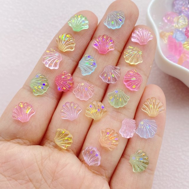 These sparkling seashell charms are best used whenever you want to add a whimsical ocean vibe to your work. They are especially great for summer festivals, seaside weddings, or just making everyday accessories a bit more magical. Their compact size and radiant shine make them stand out whether they’re on a delicate pair of earrings, a dazzling set of nails, or a playful hair clip.