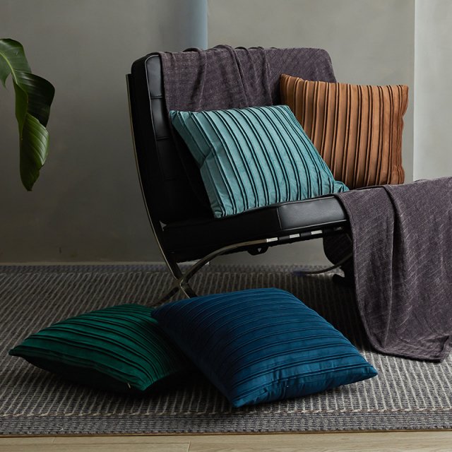 Each pillow cover is carefully handmade, showcasing exquisite pleated detailing on one side and a clean, solid velvet finish on the other. This thoughtful design not only brings depth and texture but also makes it easy to switch up your décor in seconds. Strong stitching ensures lasting durability, while the hidden zipper keeps the insert neatly tucked away for a seamless finish.