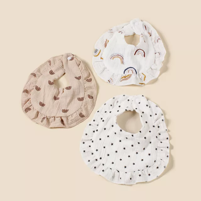 Add this 3-pack cotton baby bib set to your daily essentials and enjoy less mess, more comfort, and extra cuteness. Make feeding time easier and keep your baby smiling—add to cart today.