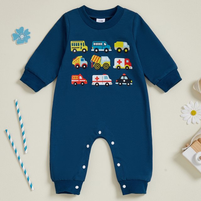 Autumn Baby Boys Long Sleeve Vehicles Print Jumpsuit Romper