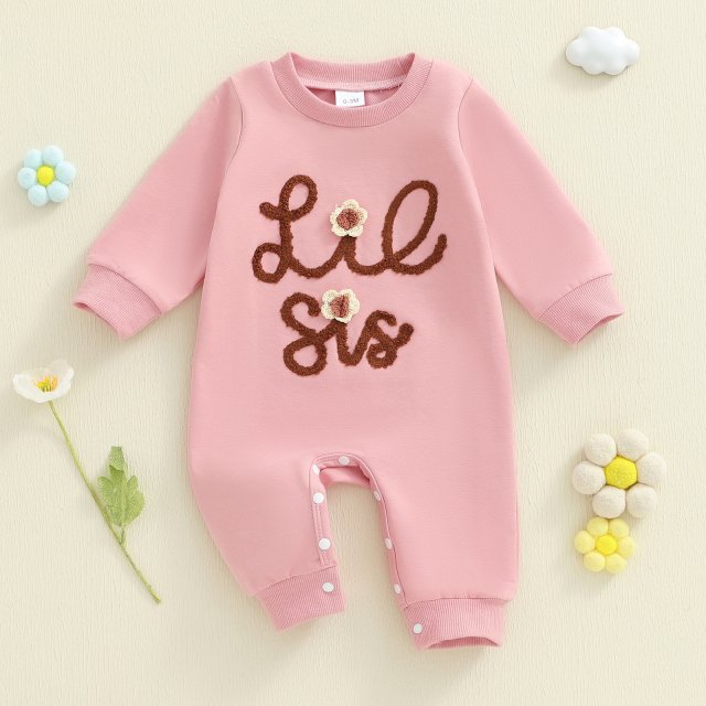 Wrap your baby girl in cozy autumn charm with this delightful long sleeve romper. Designed with love and attention to detail, this romper combines the softness of cotton with the durability of polyester, ensuring comfort for your little one all day long. The gentle pink color, floral patchwork details, and letter embroidery add a touch of sweetness that’s perfect for the season.