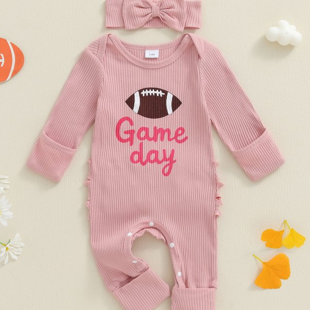 Dress your baby girl in cozy autumn charm with this long sleeve romper and headband set. Designed for newborns and infants, this outfit brings together comfort and cuteness in one delightful package. The soft 100% polyester fabric feels gentle on sensitive skin, while the classic rugby-style embroidery adds a playful, elegant touch.