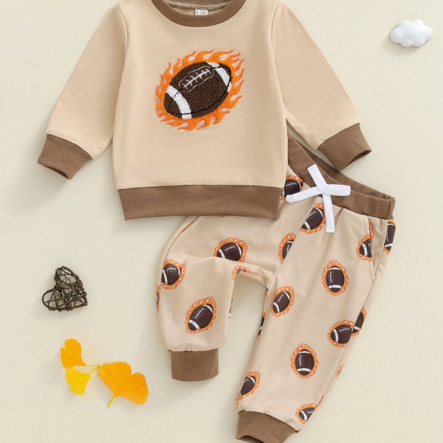 Get your little one ready for autumn adventures with this charming 2-piece toddler boy outfit. Designed with both comfort and cuteness in mind, this set features a soft long sleeve round neck pullover with an adorable football embroidery, paired with matching elastic waist pants. It’s the perfect blend of playful style and everyday practicality, making it a must-have addition to his seasonal wardrobe.