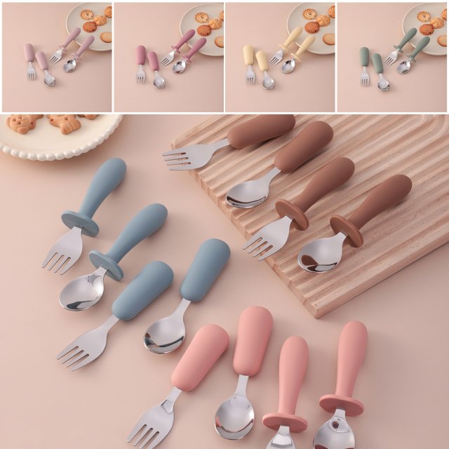 Introduce your child to independent eating with this 4-piece baby feeding utensil set. Designed with little hands in mind, each fork and spoon is made from durable stainless steel with a soft, non-slip silicone handle. Gentle on tiny fingers, the easy-grip design helps toddlers build confidence at the table while keeping mealtime safe and enjoyable.