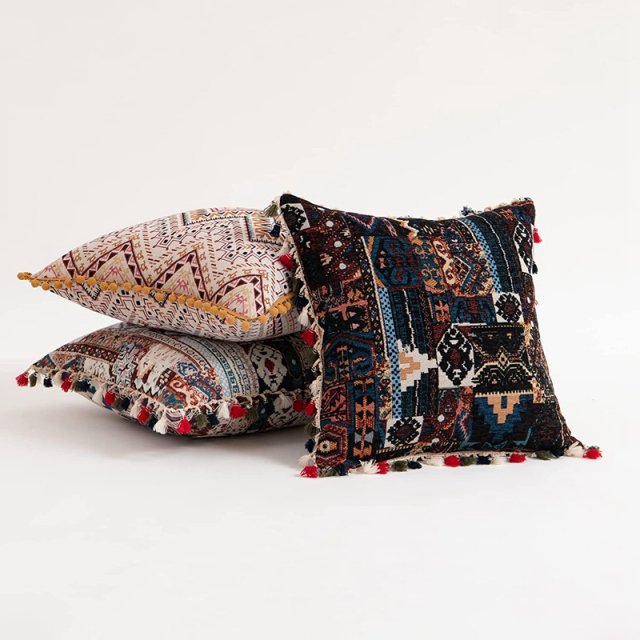 With its bold colors, detailed pattern, and playful tassels, this pillow cover is more than just a decorative piece – it’s a statement. Add it to your space today and enjoy the perfect mix of comfort and bohemian elegance. Turn your sofa, bed, or chair into a cozy, stylish retreat that’s full of personality.