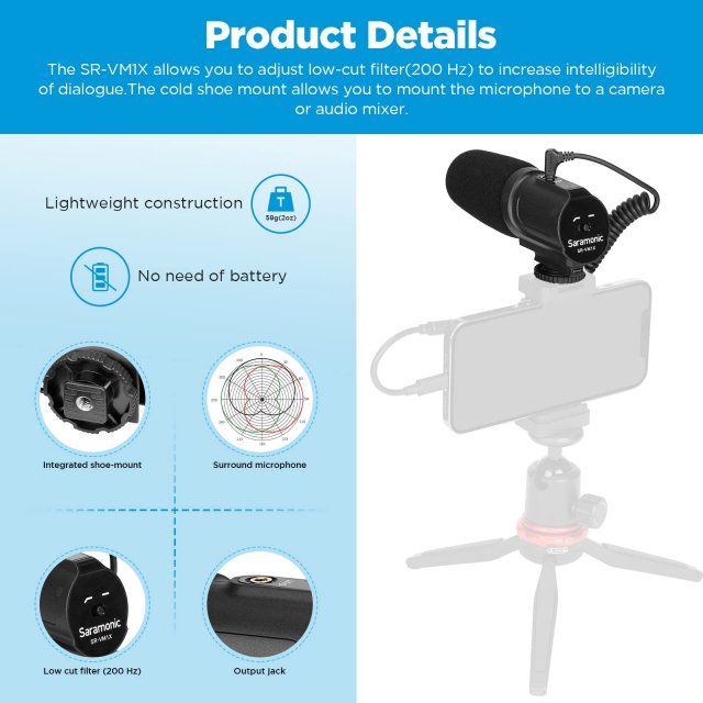 Engineered to be travel-ready yet performance-driven, this microphone is built with a surround cardioid condenser capsule that focuses on your voice while rejecting ambient noise. It features an adjustable low-cut filter (200Hz) to enhance dialogue clarity and cut out low-frequency rumble. The integrated cold shoe mount makes setup effortless, while the 3.5mm audio output ensures seamless connection to your devices. With its battery-free operation, you can simply plug in and start recording instantly.