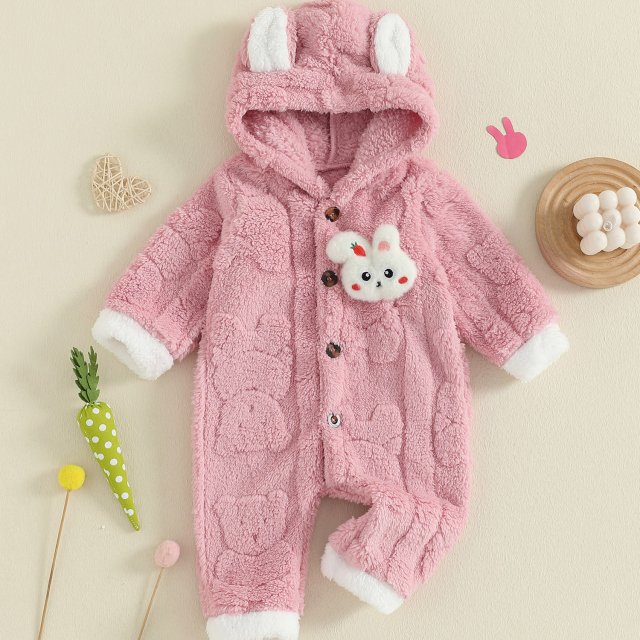 Wrap your little one in irresistible warmth and charm with this plush hooded baby romper. Made from ultra-soft 100% polyester, this adorable bodysuit keeps your baby cozy from head to toe. The sweet bunny design and soft ears on the hood add a touch of playful cuteness, while the full-length zip closure makes dressing and diaper changes quick and fuss-free. With long sleeves and a thick, snuggly interior, this romper is the perfect outfit for chilly autumn strolls, winter playdates, or simply lounging indoors.