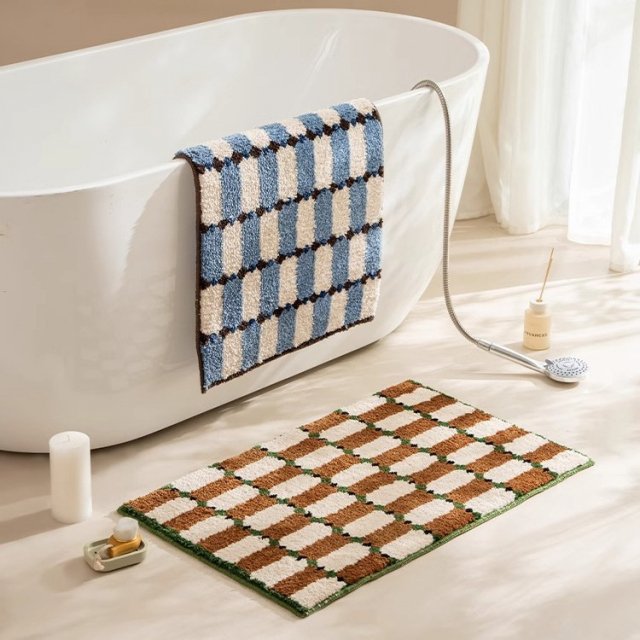 This floor mat is perfect for creating a relaxing atmosphere where comfort meets style. Use it by your bedside to greet your feet every morning, place it in front of your bathroom sink for spa-like softness, or add it to your living area as a subtle statement piece. The plaid pattern adds a cozy touch without clashing with existing décor, making it easy to refresh your space instantly. With its durable build and easy-care design, it’s made to be enjoyed every day without worry.