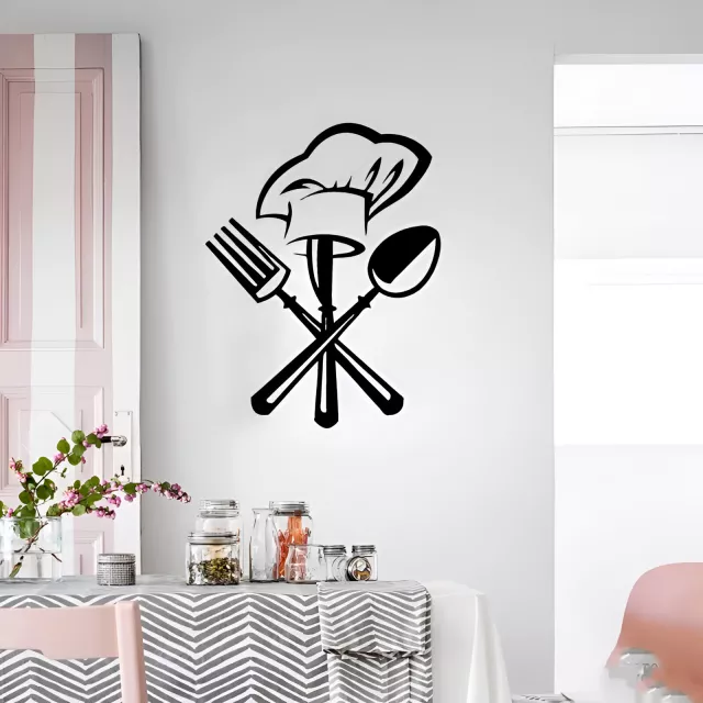 Creative Kitchen Cutlery & Chef Hat Wall Sticker – Removable Vinyl Mural