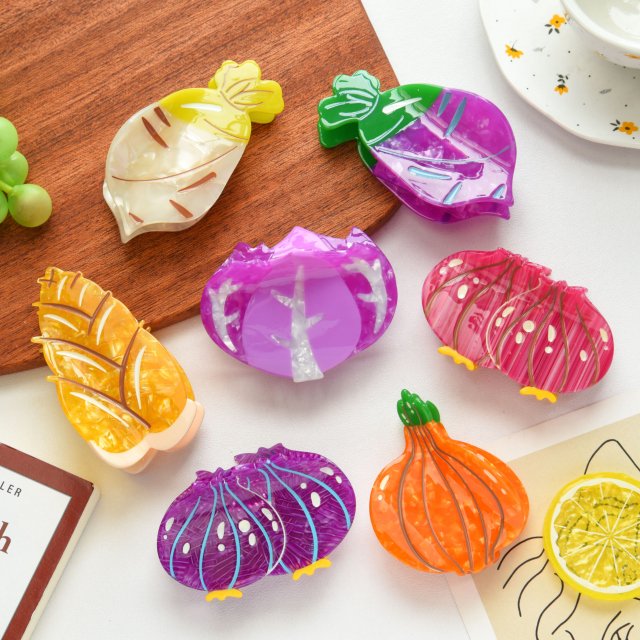 Embrace whimsy and charm with our  Creative Vegetable Series Hair Claw! Designed for fashionable women and girls, this eye-catching hair accessory features adorable designs inspired by vegetables like onions and pumpkins. Perfect for adding a playful touch to your hairstyle, this trendy hair claw is sure to be a conversation starter wherever you go!