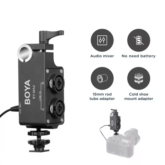 Built with convenience and versatility in mind, this audio mixer features combo XLR and 6.35mm inputs, a 3.5mm output connector, and both cold shoe and rod-mount options. Its compact design fits perfectly on DSLR rigs, making it ideal for creators who demand quality audio without bulky setups. The uni-directional condenser microphones pick up sound precisely from the desired source, minimizing background noise and delivering a clean, professional audio track.