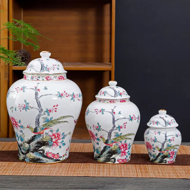 Elegant Ceramic Tea Jar with Bird & Flower Design – Decorative Storage Vase