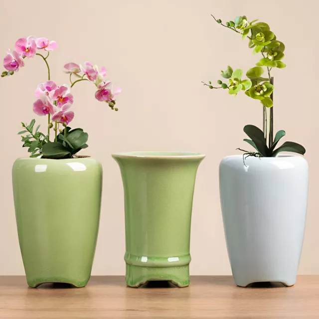 Bring calm, elegance, and natural charm into your everyday environment with this beautifully crafted glazed porcelain flower pot. Designed to complement both modern and classic interiors, this piece works effortlessly as an orchid pot, succulent planter, or stylish desktop ornament. Its smooth glazed finish and soothing blue and green tones create a refined look that instantly enhances desks, shelves, windowsills, and tabletops.