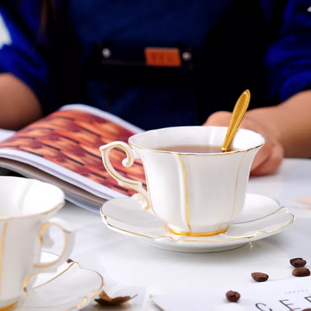 Every detail of this coffee set is thoughtfully designed to enhance your drinking experience. Its smooth, glossy surface reflects light beautifully, while the bone china construction ensures both durability and a lightweight feel. Perfect for coffee, espresso, or tea, it’s ideal for home cafés, offices, or elegant gatherings with friends.