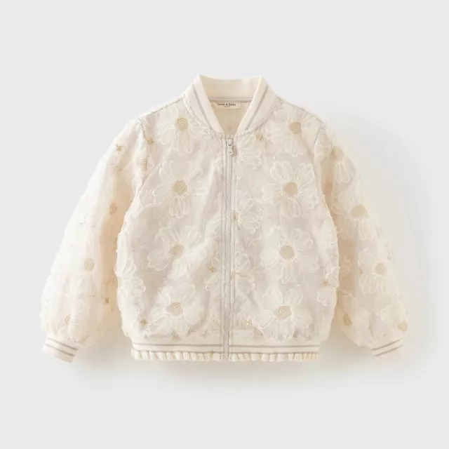 Girls Floral Baseball Jacket – Cute Spring Zip-Up Coat