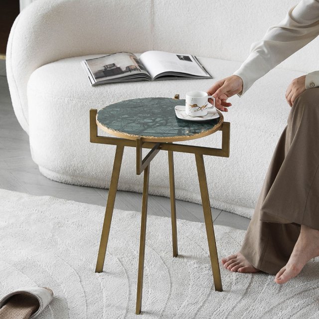 This round marble end table is best used when you want to elevate your home décor with a blend of practicality and elegance. Whether as a bedside table for your evening essentials, a stylish companion to your sofa, or a chic stand for your favorite décor, it adapts beautifully to any setting. Its versatile design makes it suitable for both everyday use and special gatherings.