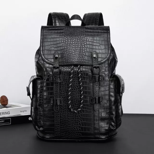 Matte Alligator Leather Laptop Backpack for Men – Large Anti-Theft Travel Bag
