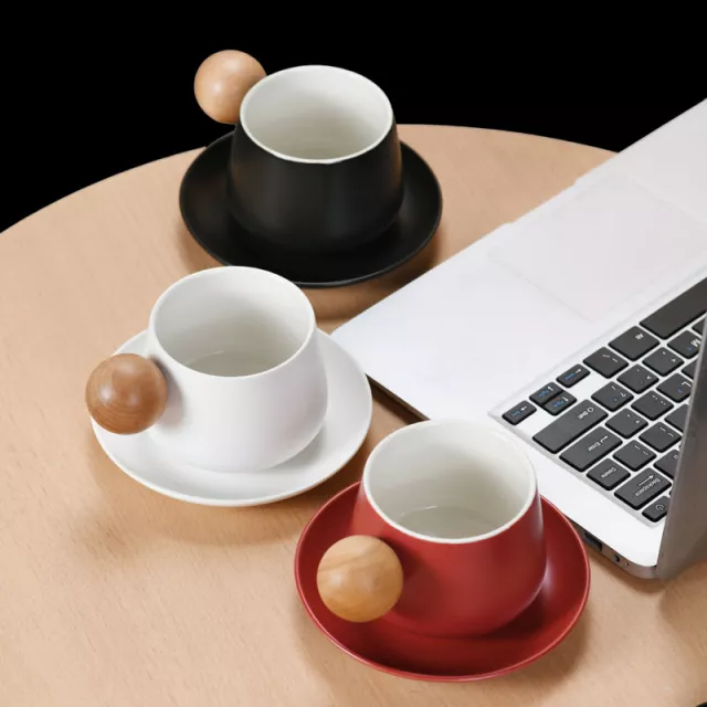 Modern Round Wooden Ceramic Coffee Cup with Saucer – Elegant Tea & Coffee Mug