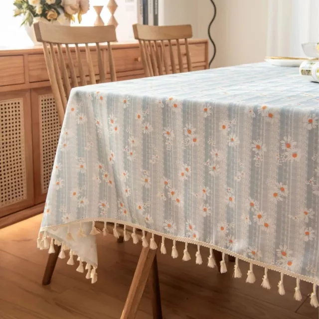 Pastoral Blue Daisy Waterproof Tablecloth – Floral Rectangular Dining Decor