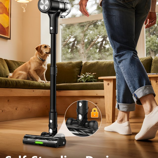 Experience a new level of clean with this high-performance cordless vacuum cleaner designed for modern homes. With powerful 46 Kpa suction and up to 55 minutes of runtime, this vacuum is made to tackle dust, pet hair, crumbs, and debris on a variety of surfaces — from hardwood floors to carpets. Its sleek, stick design makes it easy to maneuver around furniture, while the self-standing feature adds unmatched convenience.