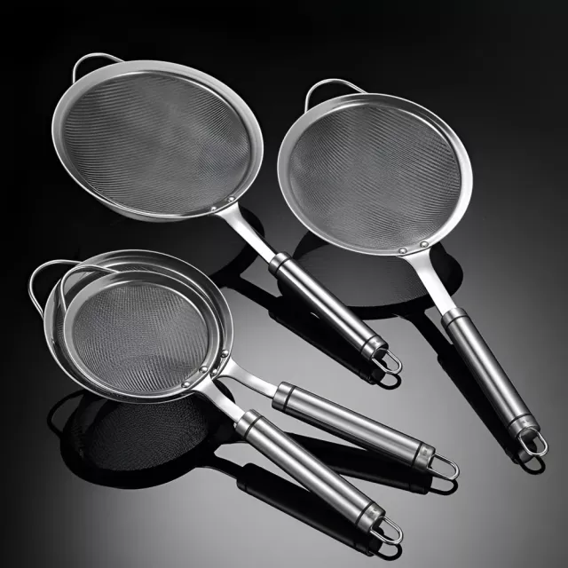 This versatile strainer is perfect for both daily cooking and baking. Use it to skim foam from soups, drain fried foods, sift powdered sugar, or rinse rice and vegetables. Its fine mesh ensures every drop of liquid drains smoothly while keeping unwanted particles out. Whether preparing light desserts or hearty meals, this tool makes your kitchen routine faster, cleaner, and more enjoyable.