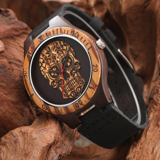 Punk Vintage Ebony Wood Watch – Unique Quartz Wristwatch for Men