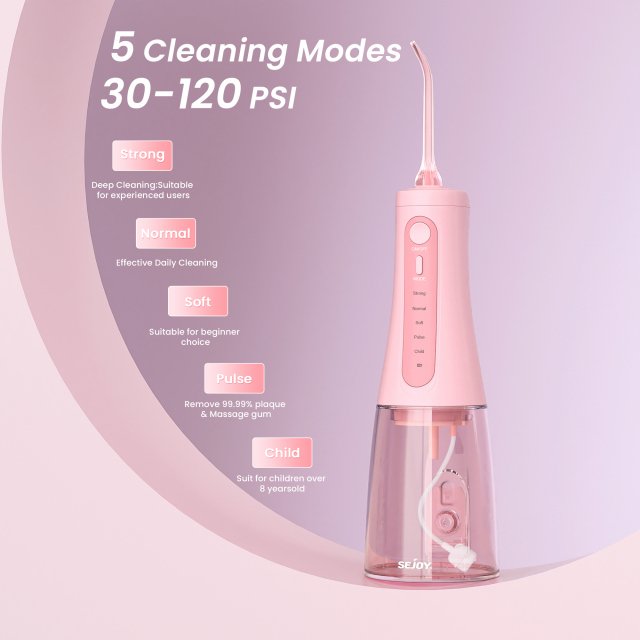 • 5 Flossing Modes: Choose from Gentle, Soft, Normal, Strong, or Pulse to match your gum sensitivity and cleaning preference.