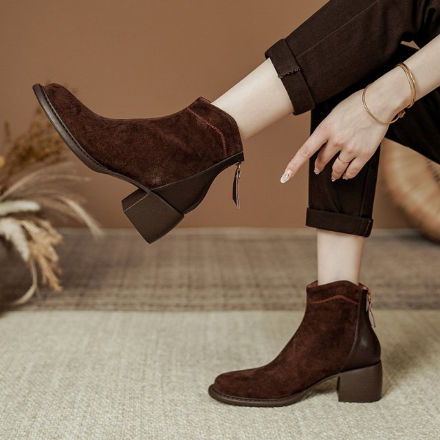 Crafted from premium sheep suede leather, they offer a soft, velvety finish that not only looks luxurious but also feels incredibly cozy on cold days. The classic round toe design adds a relaxed, laid-back vibe, while the sturdy chunky heel gives you the perfect lift without sacrificing comfort. With a convenient side zipper, slipping them on and off is effortless—making them a practical and stylish choice for daily wear.