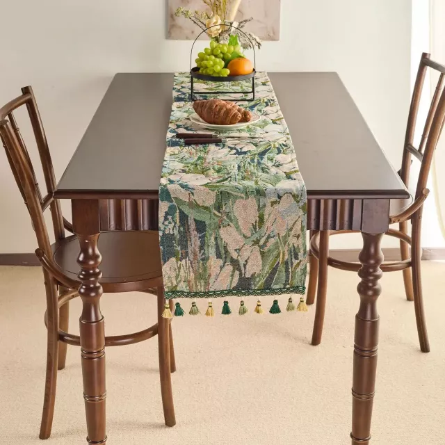 Elevate your home decor with this stunning Rustic Jacquard Oil Painting Style Table Runner today and make every space feel cozier and more inviting!