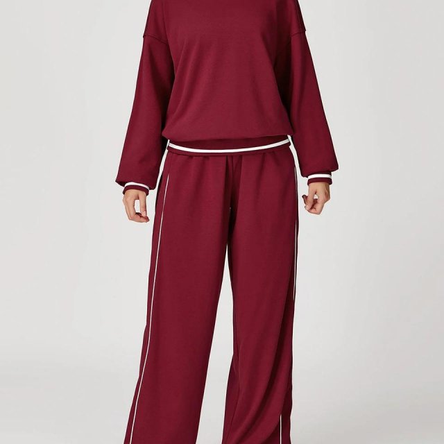 - 2-piece set: Long sleeve sweatshirt and matching high-waist pants