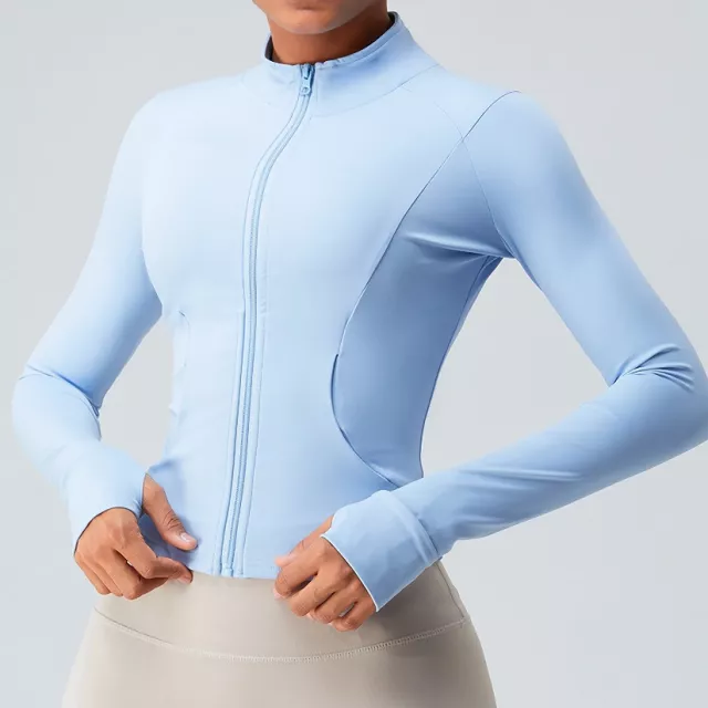This versatile fitness jacket is ideal for yoga, running, gym training, cycling, hiking, and dance workouts. It works perfectly as a lightweight outer layer in spring and fall, a breathable warm-up layer in winter, and a sun-protective cover in summer. The full front zipper lets you easily adjust airflow and style throughout your day.